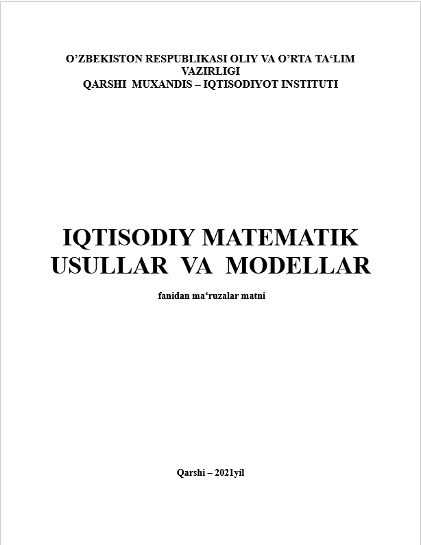 Matematik modellarning iqtisodiyot muammolarini o’rganishga tatbik etishni iqtisodiy-matematik modellashtirish, ularni amalietda qo’llashga esa iqtisodiy-matematik usullar deb yuritiladi.