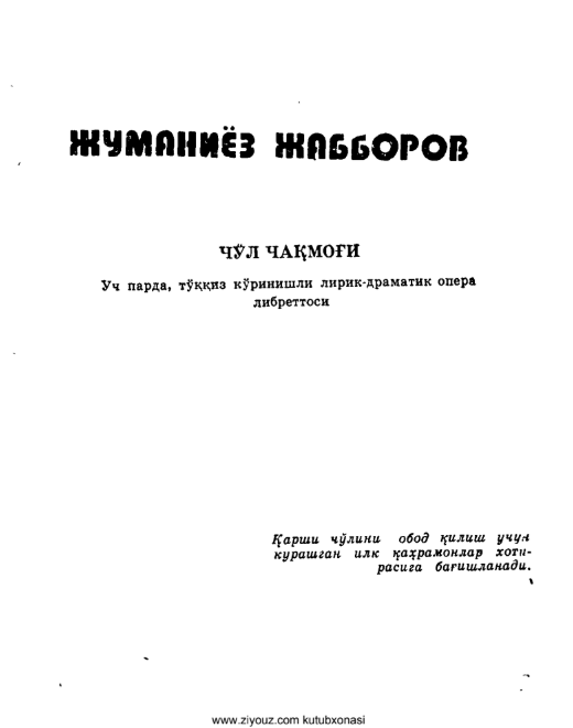 Be the first to review “Jumaniyoz Jabborov. Cho’l chaqmog’i (drama)”