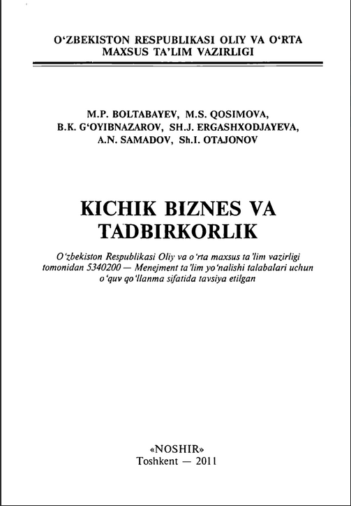 Ushbu o’quv qo‘llanmada kichik biznes va tadbirkorlikning mohiyati,