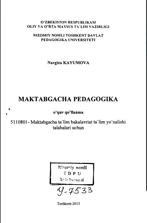 «Maktabgacha pedagogika» kursi bo’yicha tayyorlangan mazkur o’quv