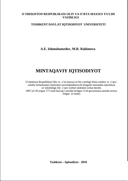 iqtisоdiyot nаzаriyasi vа аmаliyoti bilаn shug`ullаnаyotgаn mutахаssislаr uchun mo`ljаllаngаn.
